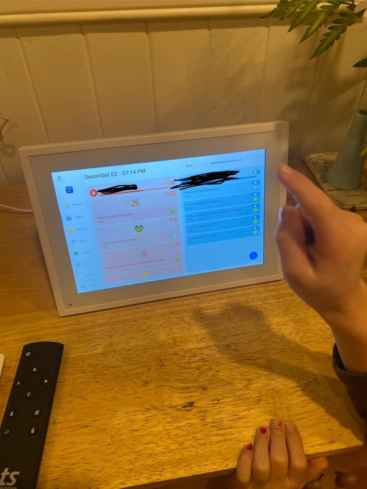Yes. The Smart Family Calendar connects to a free mobile app that allows you to send photos and videos, manage schedules and reminders, and update tasks remotely. The app works on both iOS and Android.